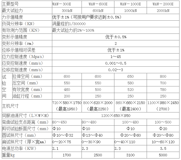 微機控制60噸/100噸鋼絲繩萬能試驗機@防護罩主要用途 微機控制電液伺服試驗機采用雙空間油缸下置結構。該試驗機主要用于金屬材料的拉伸、壓縮、彎曲、剪切等試驗;可實現(xiàn)等速率加荷、等速率變形、等速率位移等試驗,并可在一次試驗中實現(xiàn)力、變形、位移三段控制,各控制之間可平滑轉換。各項技術參數(shù):