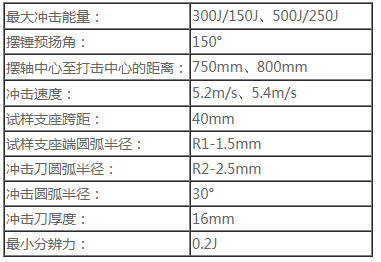 JB-W300A/W500A微機(jī)控制擺錘式?jīng)_擊試驗(yàn)機(jī)技術(shù)參數(shù):