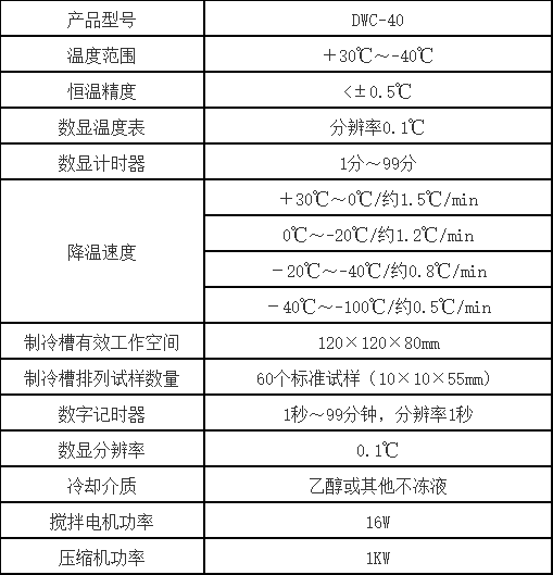 DWC-40/-40℃沖擊試樣低溫槽產(chǎn)品技術參數(shù):